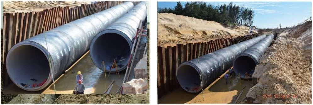 福建古雷煉化一體化項目,是目前海峽兩岸最大的石化產(chǎn)業(yè)合資合作項目。該項目 一期工程主要包括80萬噸/年乙烯和下游深加工9套化工裝置,以及配套的公用工程、 碼頭及儲運設(shè)施等,園區(qū)地下雨排水系統(tǒng)埋地管材釆用PCCP,共計15種管徑,最小 管徑DN600,最大管徑DN3200,工作壓力0.4~0.6MPa,管線長度約32km。